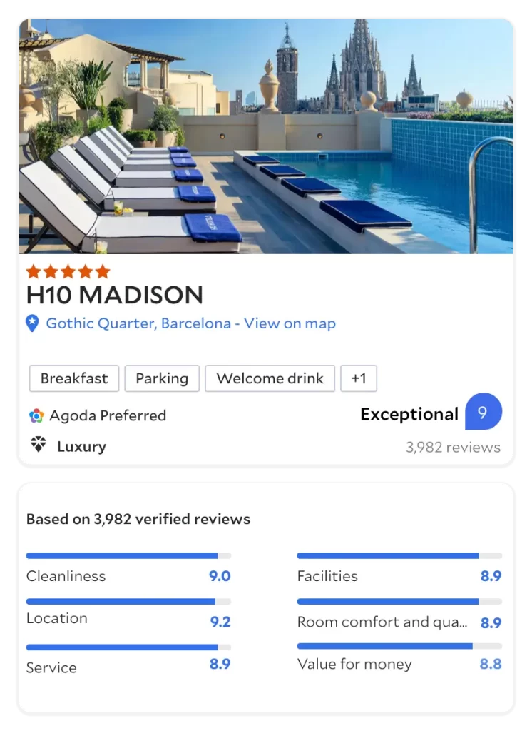 That said, you’ll be slightly further from the beach and the Gothic Quarter’s postcard-worthy charm.