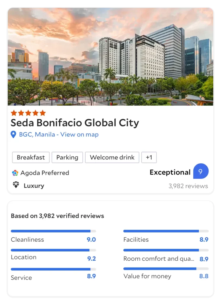 If you’re into design hotels, fast Wi-Fi, and apartment-style condos with rooftop pools, BGC delivers.